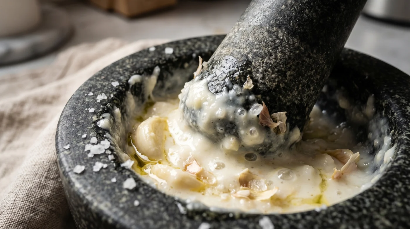 Sarımsağı tuzla ezmek, malzemenin direncini kırmak değil, onun özündeki lezzeti şefkatle dışarı davet etmektir.