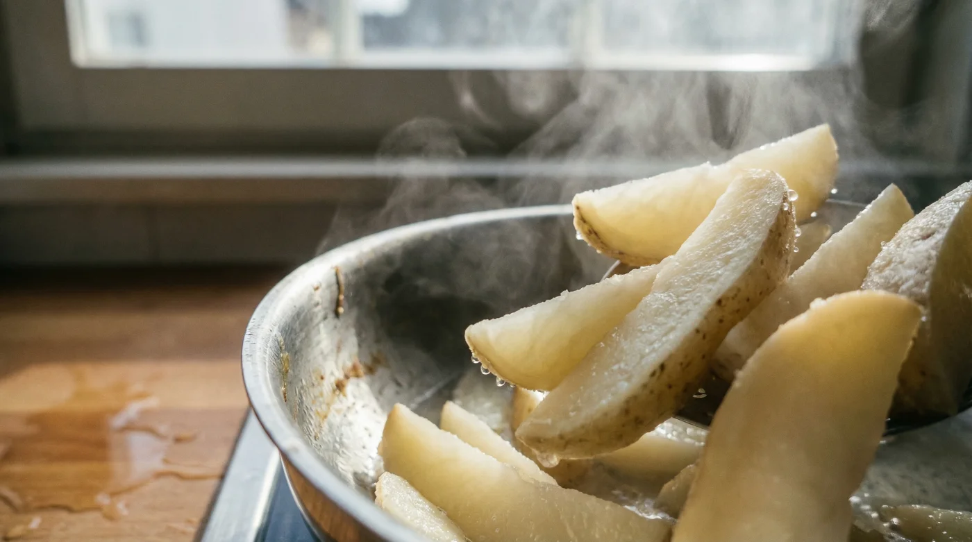| Çiğ patatesi direkt kızgın yağa atmak | Yağ çekmiş, yumuşak ve mideyi yoran ağır patatesler | Mikroskobik bir kabuk oluşumu ile yağı dışarıda tutmak |
