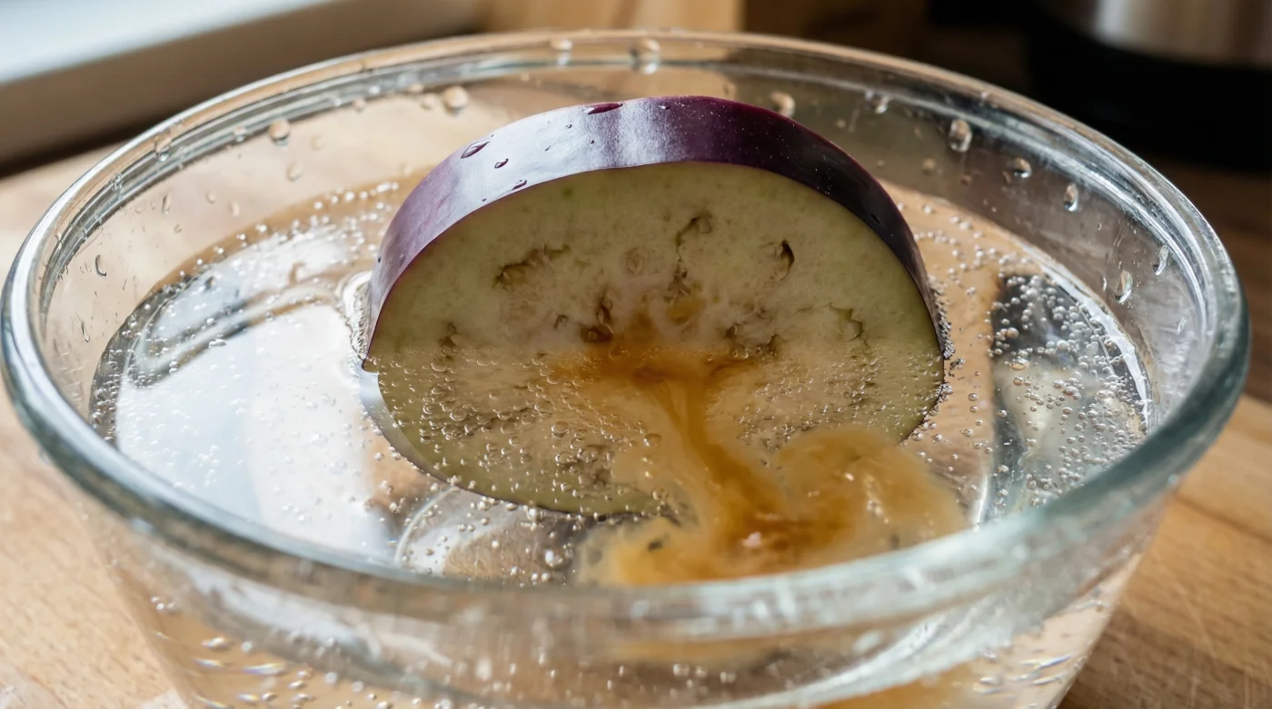 Bu bilgiyi mutfak rutinine dahil etmek son derece basit ve tatmin edici bir fiziksel eylem gerektirir. Patlıcanları alacalı soyduktan sonra yapacağın yemeğe uygun şekilde dilimle ve derin, geniş bir kaseye al. Üzerine bir şişe sade maden suyunu (patlıcan miktarına göre iki şişe de olabilir) gezdirerek dök. O an başlayan köpürme sesine kulak ver; bu ses, yemeğinin kalitesinin artmaya başladığının en net işaretidir. Sadece 5 dakika bekledikten sonra, suyun renginin nasıl koyulaştığını ve acı özsuyun dibe çöktüğünü kendi gözlerinle göreceksin. Patlıcanları suyun içinden al, bir kağıt havlu yardımıyla üzerlerindeki ıslaklığı hafifçe tamponlayarak kurula. Bu kurulama işlemi, kızgın yağa girdiklerinde sıçramalarını engelleyecek ve dışlarının nar gibi kızarmasını sağlayacaktır. Artık ne tuzun erimesini beklemek zorundasın ne de saatlerini tezgâh başında harcamak.
