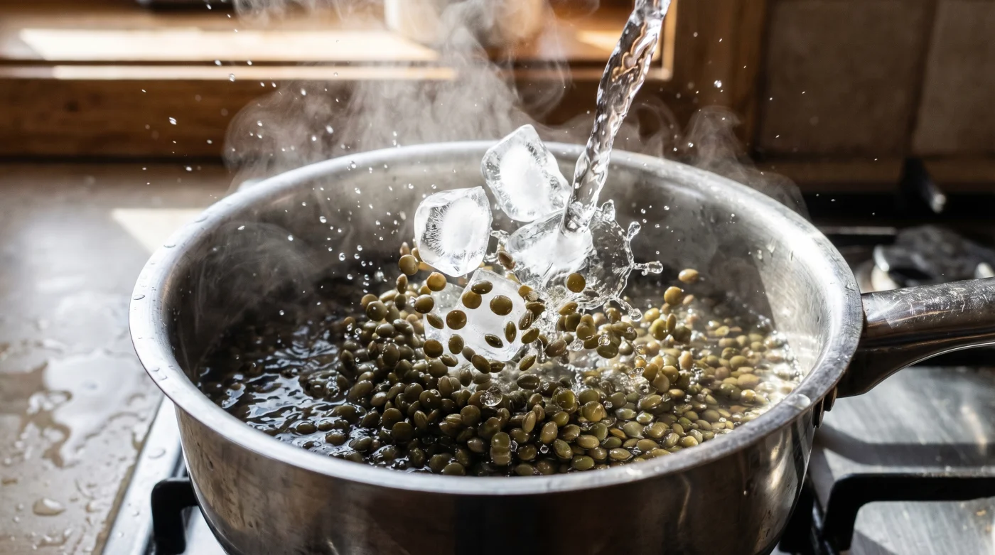 Zamanlamayı saniyelerle kaçırırsanız veya buzu gereğinden çok erken eklerseniz, malzemenin dış yüzeyi tamamen kilitlenirken merkezi taş gibi sert kalır. Bu can sıkıcı durum, genellikle ev tipi ocakların standart olmayan ısı kapasitelerinden kaynaklanır. Şoku verdikten sonra taneler hala çok sertse, moralinizi bozmayın; ocağın ısısını çok hafifçe artırarak merkezdeki nişastanın yumuşaması için ona zaman tanıyın ama suyun asla tekrar delice kaynamasına izin vermeyin.