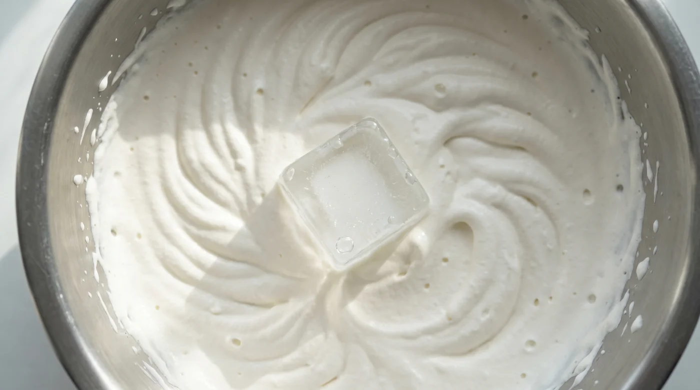 - Uzman Bağlamı: Viyana’nın saygın eski usul şeflerinden Franz’ın yıllardır tezgahında uyguladığı o hamleyi yapın. Kremada ilk kalınlaşma belirtisini, yani sıvının yüzeyinde dönen hafif dalga izlerini gördüğünüz saniye, kaseye standart boy bir buz küpü bırakın.