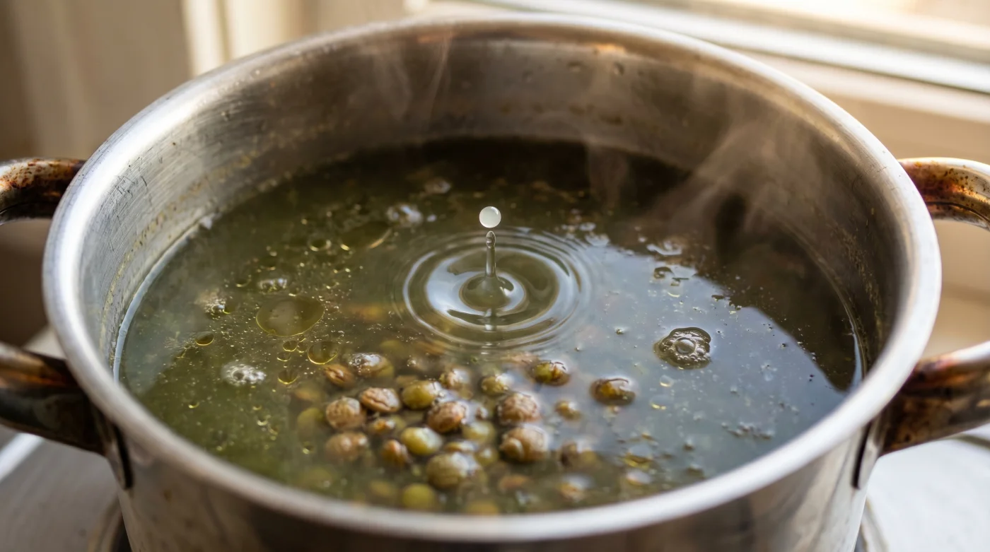 2. Soğuk Başlangıç Kuralı: Tencereye aldığınız her bir bardak yeşil mercimek için tam üç bardak soğuk içme suyu ekleyin. Ocağa sıcak suyla başlamak, kabukların termal şok yaşayıp anında çatlamasına neden olur.