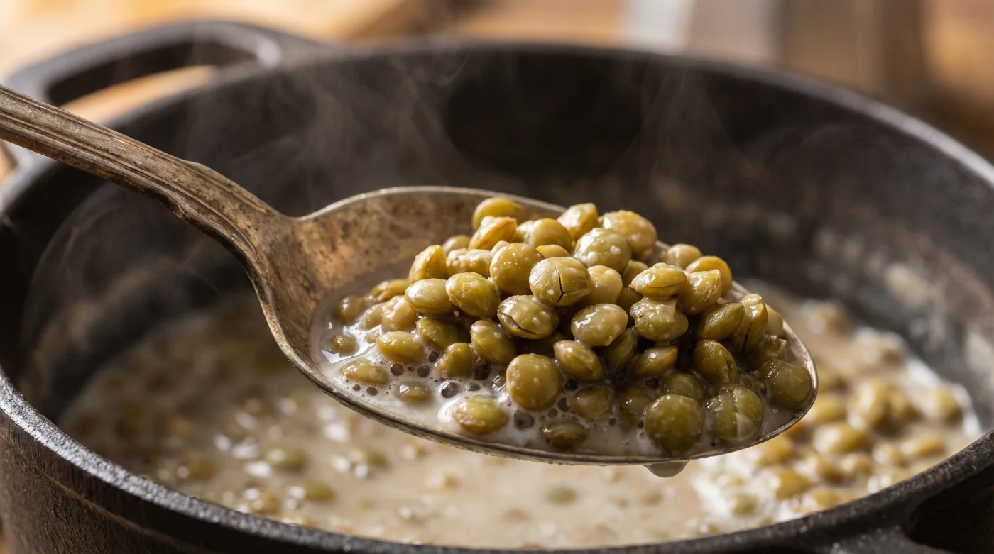 • Asit Desteği (Uzman Sırrı): Köpüğü aldıktan hemen sonra, 1 su bardağı yeşil mercimek için tam 3 çorba kaşığı soğuk tam yağlı sütü tencereye ekleyin. Sütün soğuk olması, ani bir ısı değişimi yaratarak mercimeğin gözeneklerini şokla açar.