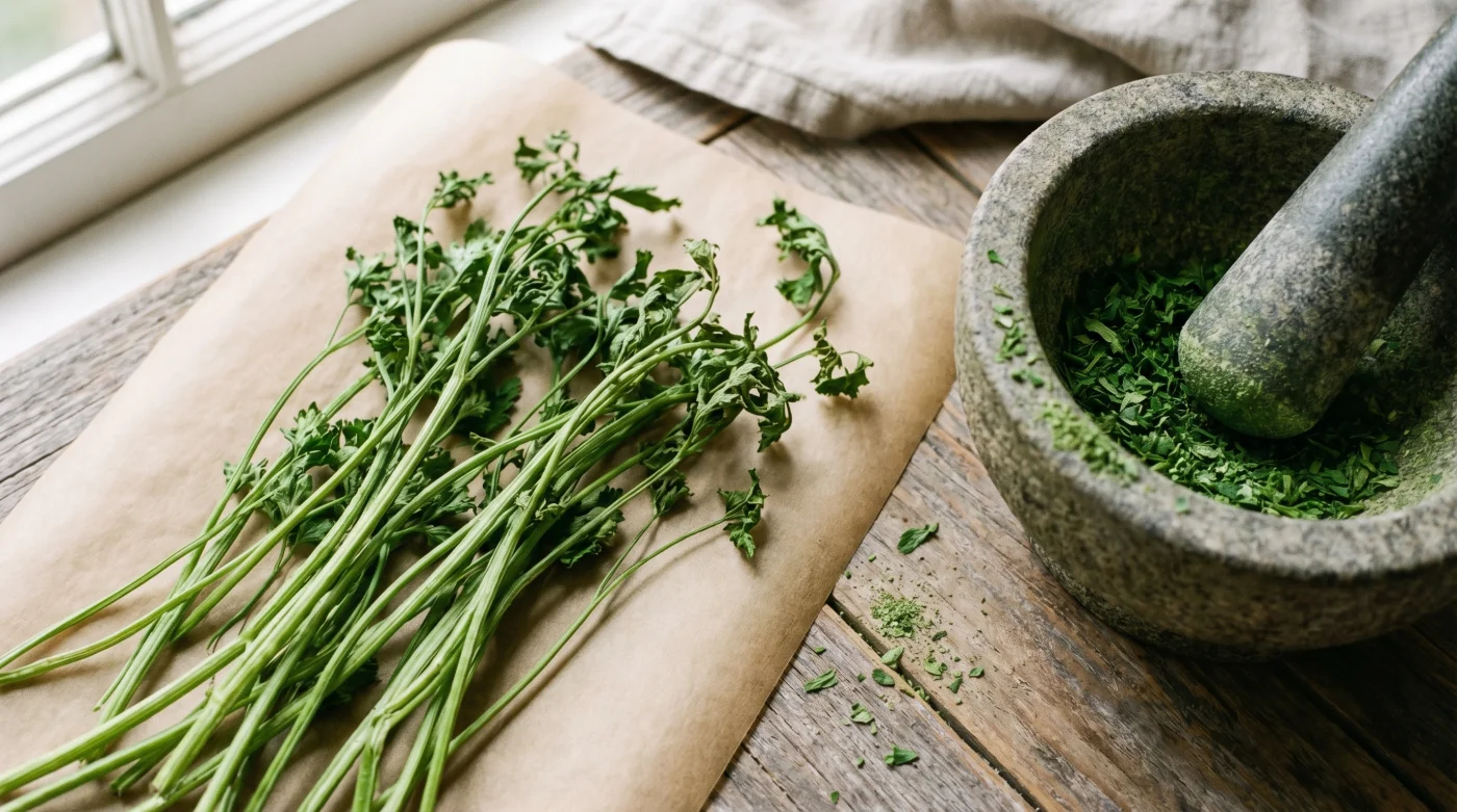 Katıksız bir saflık arayanlar için ise hava kurutması idealdir. Sapları gevşek bir pamuklu beze sarıp, direkt güneş ışığı almayan, esintili bir odada 4-5 gün bekletebilirsiniz. Bu yöntem, klorofil miktarını en üst düzeyde korur ve rengin yemyeşil kalmasını sağlar.