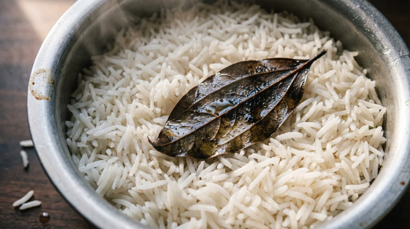 4. Defne Yaprağının Sahneye Çıkışı: Şefin gizli formülü burada devreye girer; iki su bardağı pirinç için tam olarak orta boy, tek bir bütün kurutulmuş defne yaprağı kullanın. Yaprağı suyun yüzeyine usulca bırakın, kaşıkla dibe itmeyin.