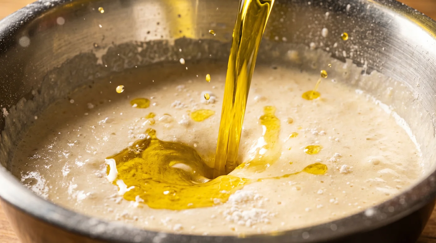 | Doğrudan yoğun zeytinyağı eklemek | Yağı ılık su veya sütle seyrelterek katmak | Hafif, süngerimsi ve eşit kabarmış gövde |