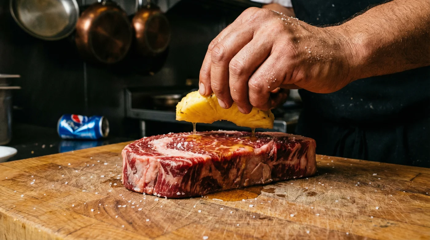 Marinasyon süresini 45 dakikanın altında tuttuğunda ve eti pişirmeden önce kağıt havluyla iyice kuruladığında, geriye rahatsız edici bir tatlılık değil, sadece hafif bir umami dengesi ve mükemmel bir karamelize yüzey kalır.3. Kola veya Pepsi eti gerçekten hiç mi yumuşatmıyor?