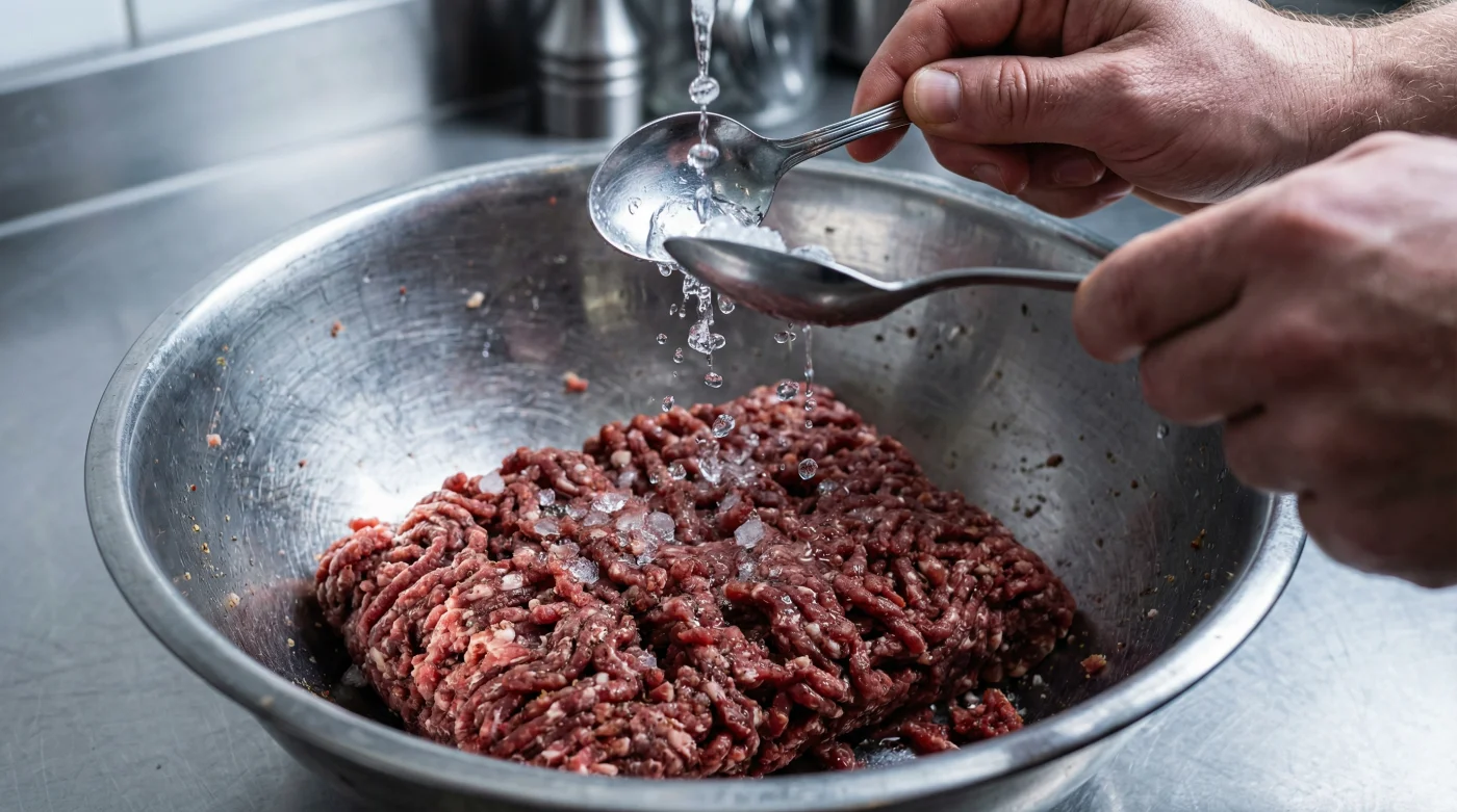 Fakat profesyonel mutfakların tezgahlarında bu ezberi bozan çok basit bir alışkanlık yatar. Harca son anda eklenen iki kaşık buzlu su, ızgara üzerindeki bütün termal dengeleri değiştirir. Kuru ve sıkı bir harcın aksine, bu ufak nem takviyesi etin ateşe karşı verdiği tepkiyi bütünüyle yeniden yazar.