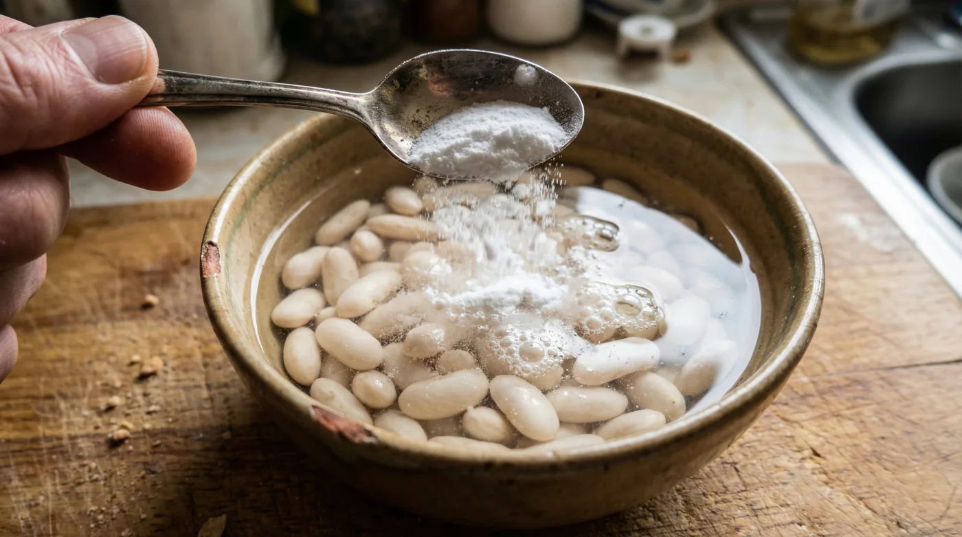 Sadece gece ıslatma suyunda kullanıp sabah o sarı suyu tamamen dökerek fasulyeleri soğuk suda iyice durularsan, geride yemeğe geçecek hiçbir kimyasal tat veya koku kalmaz.Mutfaktaki klasik kabartma tozu karbonatla aynı işi görür mü?