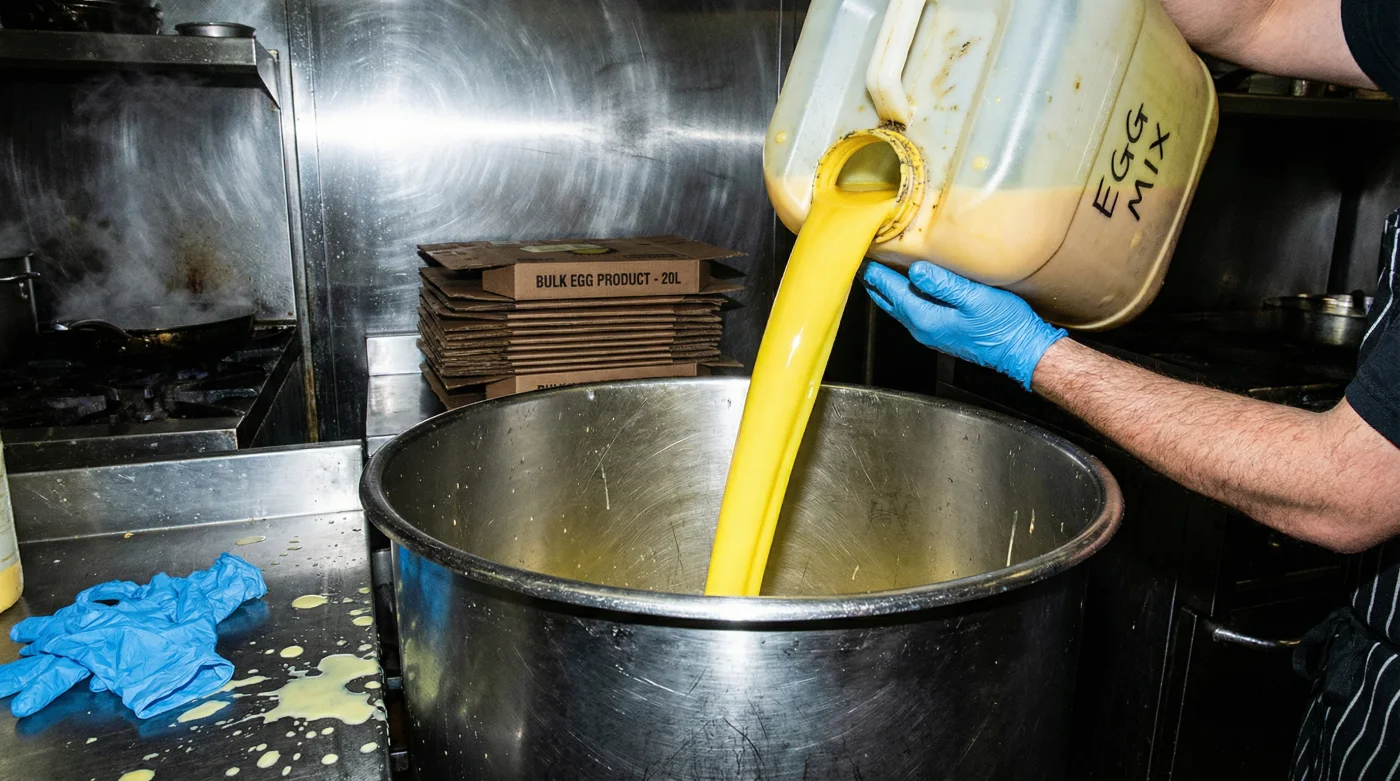 İkinci katman ise tamamen işin fiziksel mekaniğiyle ilgilidir. Saniyeler içinde kaç taze yumurta kırabilirsin ve bu hızda kaliteyi nasıl korursun? Üç bin misafir aynı anda kahvaltıya indiğinde, o devasa iştahı manuel bir işgücüyle doyurmak imkansızdır. Toz veya pastörize sıvı karışımlar, su veya süt ile birleştiğinde dakikalar içinde devasa ve kusursuz porsiyonlara dönüşür.