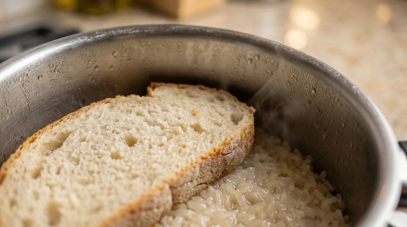 • Hafif Yapışkan Dokulular: Eğer pirinçler hala formunu koruyor ama birbirine tutunuyorsa, sadece tek bir dilim bayat ekmeği pilavın tam ortasına koy ve tencerenin kapağını bir havlu kağıtla kapat. 5 dakika beklemen yeterli.