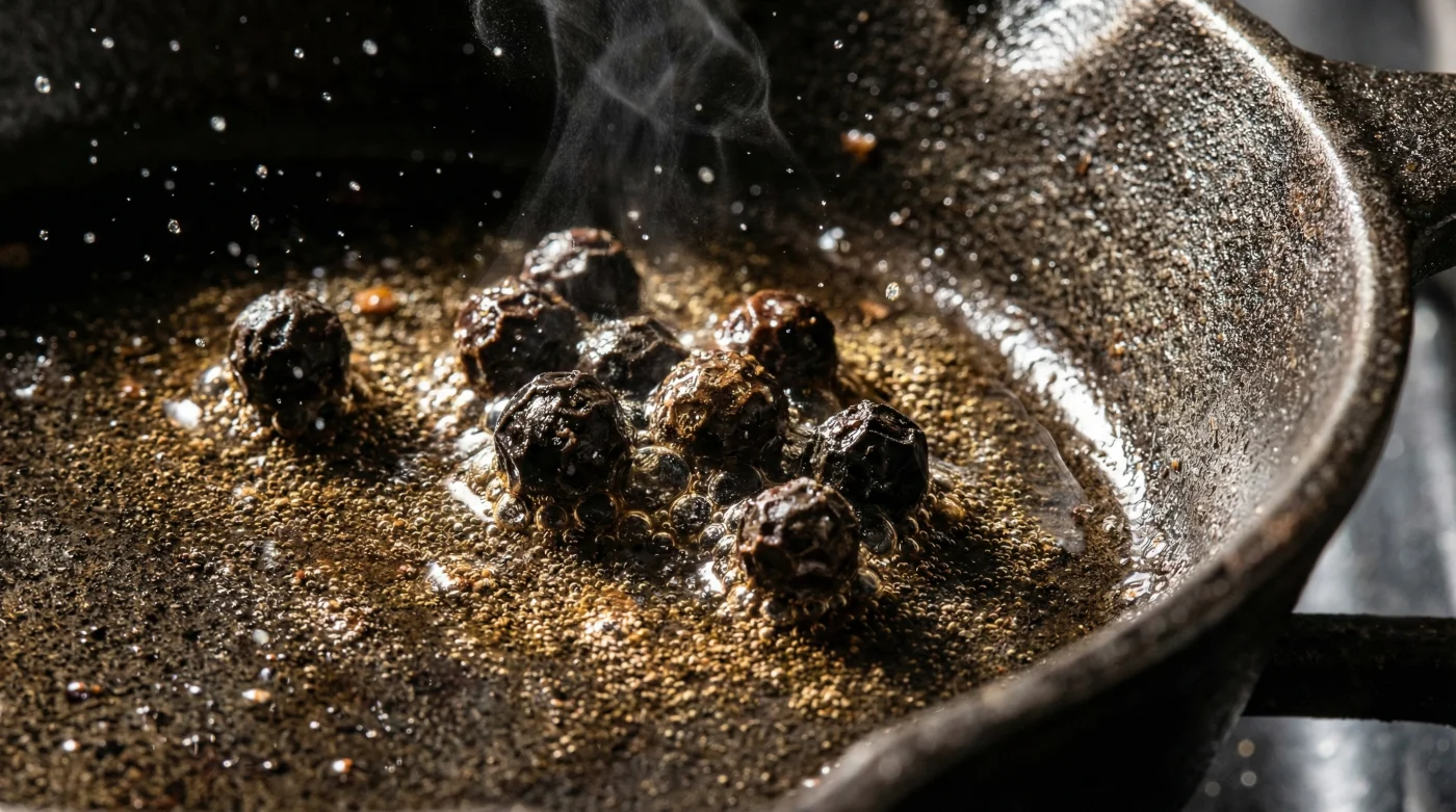 Ancak restoran mutfaklarında işler çok daha farklı yürür. Orada karabiber, yemeğe son anda serpilen bir kül değil, yemeğin omurgasını oluşturan sıcak bir temeldir. Tavada eriyen sadeyağ veya ısınan zeytinyağı ile buluşan bütün karabiber taneleri, o keskin ve burun yakan toz formundan sıyrılıp, topraksı ve sıcak bir karaktere bürünür. Sıcak yağın içindeki çıtırtı, sıradan bir akşam yemeğini usta işi bir tabağa dönüştüren o görünmez sınır çizgisidir.