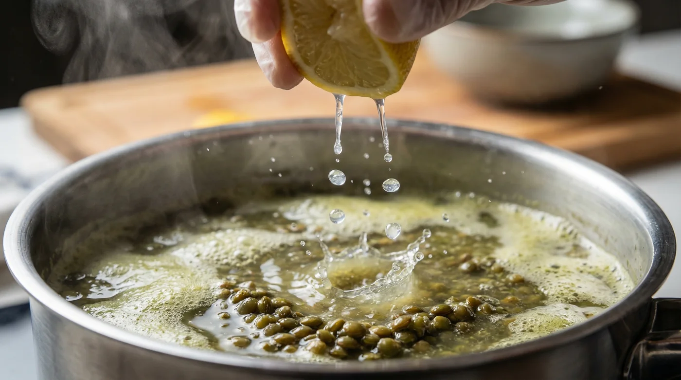 • Zamanlama Pratiği: Su yüzeyinde o ilk ufak tefek kabarcıklar belirdiği anda, tam 1 su bardağı yıkanmış mercimek için 1 tatlı kaşığı (ortalama 10-12 damla) taze sıkılmış limon suyu ekle.
