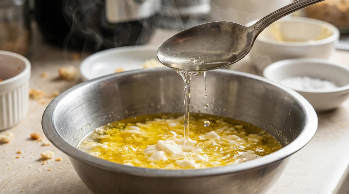 Suyu ekledikten sonra sos sulanıp tadını kaybeder mi? Sadece bir yemek kaşığı su eklediğin için lezzet seyreltilmez, aksine yağın ağır kokusu kırılarak daha hafif bir damak zevki sunar.