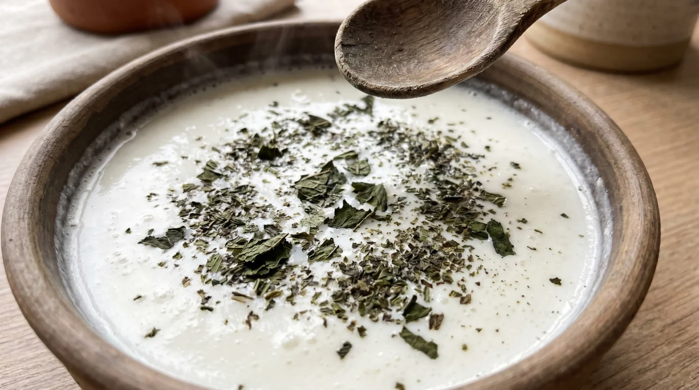| Kesilmemesi için çorbayı saatlerce ılıştırmak. | Kaynama noktasında bitkisel lif (nane) bariyeri yaratmak. | Zaman tasarrufu ve garantili kadife doku. |