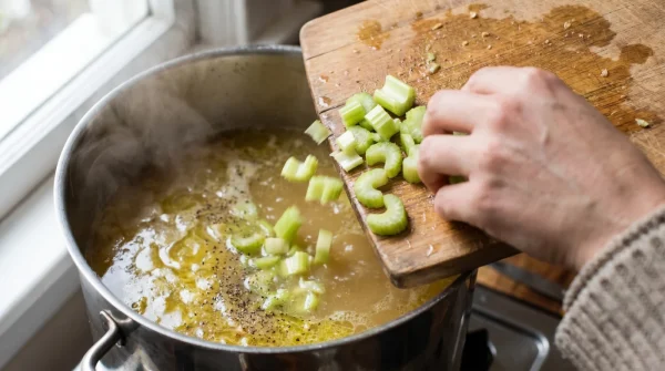 - Terbiyeyi tencereye aktardıktan hemen sonra tahta kaşıkla sürekli karıştırarak ısının tabana dengeli dağılmasını sağlayın. Suyun yüzeyinde ince, titreşen kabarcıklar görmeye başlayana kadar aynı ritmi koruyun.