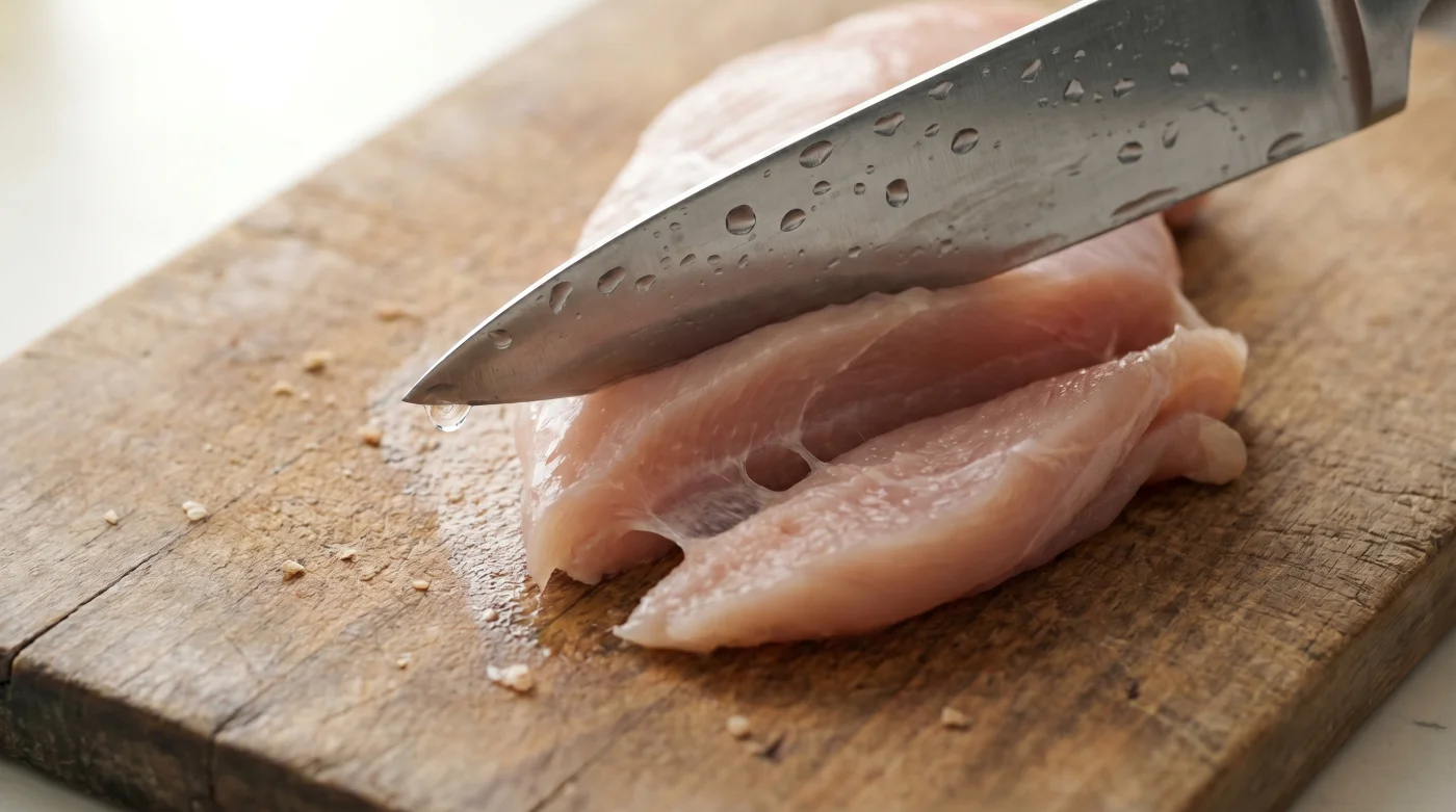 Hayır, sıcak su tavuğun yüzeyindeki hassas proteini anında pişirerek bıçağa daha çok yapışmasına ve etin matlaşmasına neden olur. Daima musluk suyu soğukluğunda veya buzlu su kullanmalısın.Sadece tavuk göğsünde mi işe yarar?