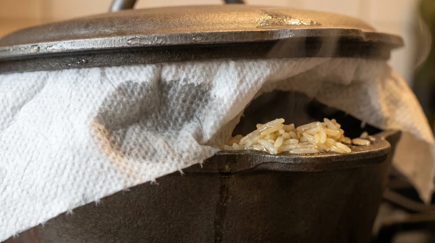 Gevşek bırakılan bir havlu, buharı emdikçe ağırlaşır ve pirinçlerin üzerine sarkar. Gerginlik, yoğunlaşan suyun yemeğe temas etmeden hapsedilmesini sağlayan bir çatı görevi görür.2. Bez havlu yerine neden kağıt havlu kullanmalıyım?