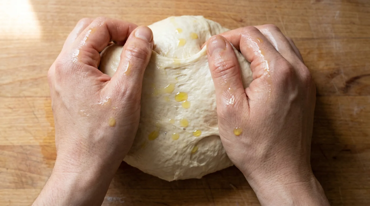 Taktiksel Araç Seti olarak şu üç altın kuralı aklında tutman yeterlidir: Her yoğurma turu için elinde maksimum 1 tatlı kaşığı sızma zeytinyağı kullan, fazlası hamurun yüzeyini tamamen kapatıp mayanın nefes almasını engeller. Ellerin normalden sıcaksa hamur çok daha çabuk erir ve yapışır; bu yüzden işlemi serin ellerle yap.