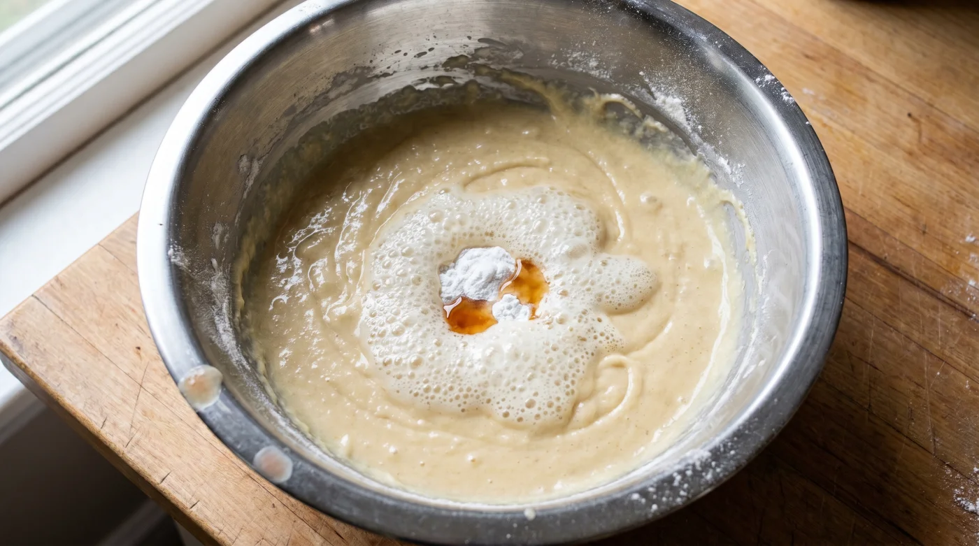 Bütün o hava kabarcıkları uzaya karışır ve fırına girdiğinde elinde sadece yorgun bir sıvı kalır. Reaksiyonu içeride hapsetmek için, asidin o son saniyedeki dokunuşuna odaklanmalısın. Adımları bir ritüel gibi, yavaş ve dikkatli atmalısın.