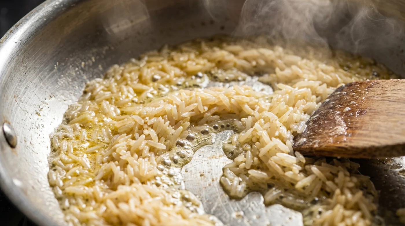 Islak pirinci doğrudan kavurmaya alırsam ne olur? Tenceredeki ısı aniden düşer, tereyağı mühürleme görevini yapamaz ve pirinçler kendi suyunda haşlanarak lapa olmaya başlar.