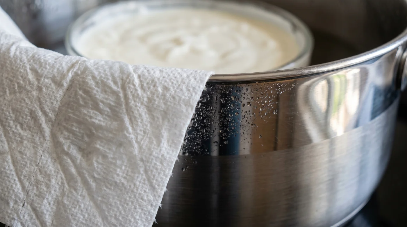 Sen aslında fermantasyon sürecinde başarısız olmuyorsun; sen sadece yağmuru durduramıyorsun. İşte tam bu noktada mutfaktaki sıradan bir kağıt havlu senin görünmez kalkanın oluyor. Tencerenin ağzına gergin bir şekilde serdiğin iki katlı, temiz bir kağıt havlu, bu seranın içine nefes alan bir asma tavan yaratır. Bu kağıt tavan, sütün yüzeyinden yükselen o sıcak yoğunlaşmayı, daha ağır su damlalarına dönüşüp geri düşmeden önce nazikçe emer. Yoğurdun adeta bir yastığın içinden nefes alır; yüzeyi tertemiz, mat, kuru ve kaymağı titretecek kadar sıkı bir kıvamda kalır.