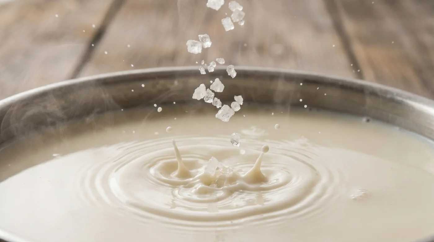 • Tuzun Zamanlaması: Mayayı sütün içine katmadan tam 2 dakika önce, havanda iyice ezilmiş kaya tuzunu serpip nazikçe karıştır.