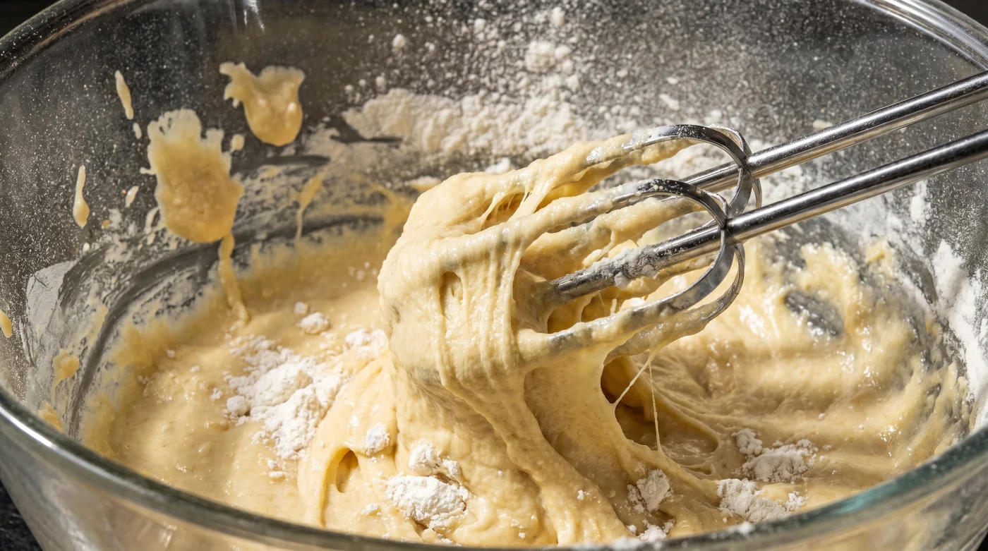 İşte pazar günü keyfimizi sabote eden o büyük mantık hatası burada başlıyor: Çırpma süresi uzadıkça hafifliğin artacağını zannediyoruz. Oysa buğday ununun içinde proteinler bulunur. Bu proteinler su, süt veya yumurta gibi bir sıvıyla temas edip metal çırpıcılar tarafından şiddetle dövüldüğünde glüteni oluşturur. Unutma ki, glüten esnek bir halattır; pofuduk bir minder değil.