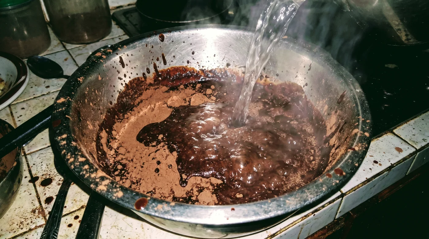 Mutfakta geçirecek sadece on dakikan varsa, kaynayan suyu doğrudan kuru kakao ile ayrı bir kapta karıştırmak yerine, hamurun en son aşamasında karışıma dahil edebilirsin. Bu hızlı yöntem, yumurtaları pişirme riskini barındırsa da, suyu ince bir ip gibi akıtarak sürekli çırptığında sana o çok aradığın nemli dokuyu verecektir. Sürekli hareket halinde olmak bu işin tek kuralıdır.