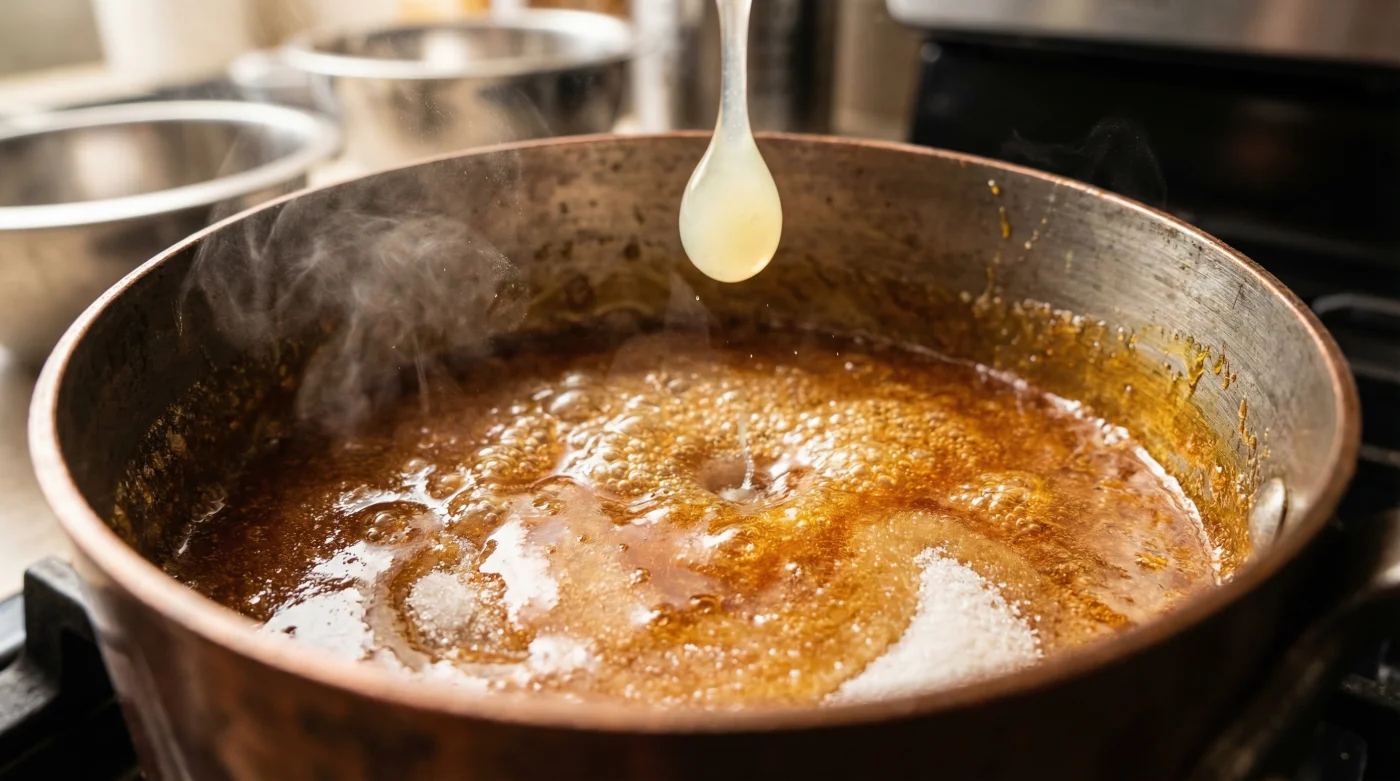 - Bilek Hareketi: Asla kaşık yok. Erimemiş şekerleri sıvıya katmak için tavayı sapından tutup dairesel ve yumuşak hareketlerle salla.