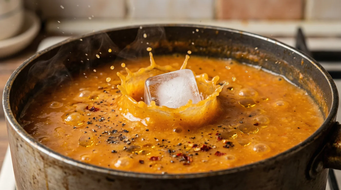 Taktiksel Araç Kutusu: İdeal sonuç için çorbanın kaynama sıcaklığı 100°C iken atılan standart boyutta iki buz küpü, bölgesel ısıyı anlık olarak 85°C civarına düşürür. Bu 15 derecelik ani kırılma, pigmentlerin yanmasını engelleyen ve senin çorbana o lüks görünümü veren altın aralıktır.