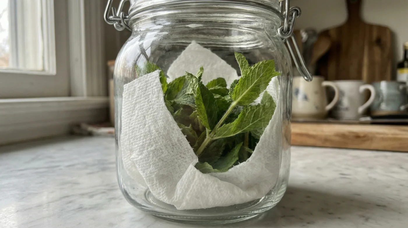 İşte tam bu noktada, sıradan bir cam kavanoz ve bir yaprak kağıt havlu devreye girerek bu yıkıcı döngüyü tamamen kırar. Kağıt havlu, bitkinin hücrelerinden terleyerek dışarı attığı fazla nemi anında emerken, camın o kalın ve yalıtkan yapısı dışarıdaki nemin içeri sızmasını engelleyerek bozulmayı adeta dondurur.