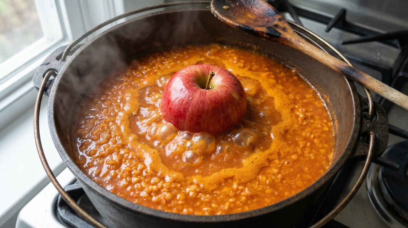 İşte tam bu noktada bütün bir elma sahneye çıkıyor. Çiğ elmanın dokusunda saklı olan doğal malik ve tartarik asitler, kaynayan suyun ısısıyla birleştiğinde adeta mikroskobik birer makasa dönüşür. Suya yavaşça salınan bu asitler tencerede sessizce keser ve mercimeğin içindeki o sindirimi zor şeker bağlarını usulca eritir.