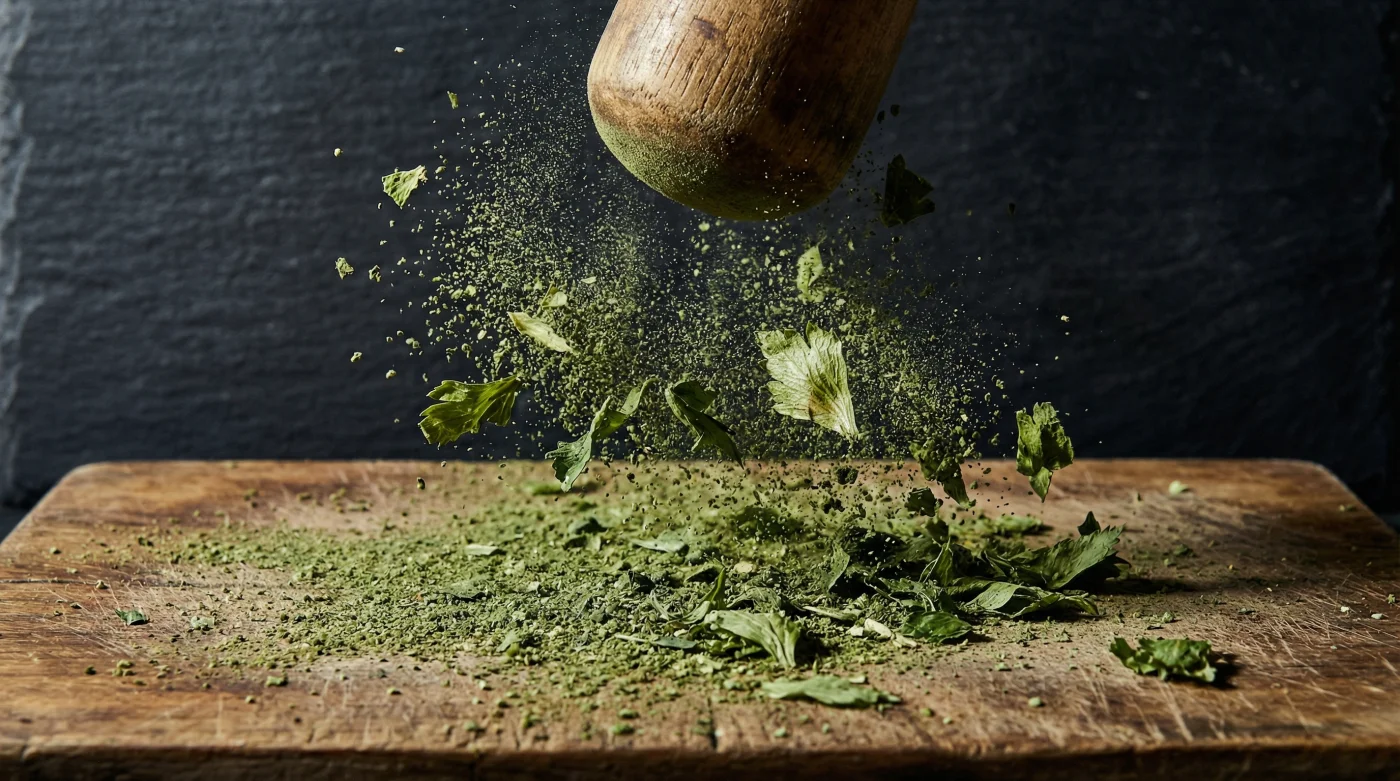 | Öğütme ve Zenginleştirme | Soğuyan yaprakları deniz tuzu ile havanda dövmek. | Yemeklere anında nüfuz eden, sıfır atık prensipli ekonomik bir ev bulyonu yaratır. |