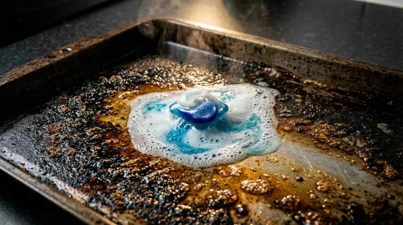 Suyun altında saatlerce ovup yüzeyin cilasını matlaştırmak yerine, suyun ve aktif enzimlerin sessiz çalışmasına alan açmalısın. Fırın tepsisine yapışan ve taşlaşan o siyah karbon tabakası, aşılması imkansız bir duvar değil; sadece doğru ısıda ve doğru bileşenle kırılmayı bekleyen oldukça zayıf bir kimyasal bağdır.